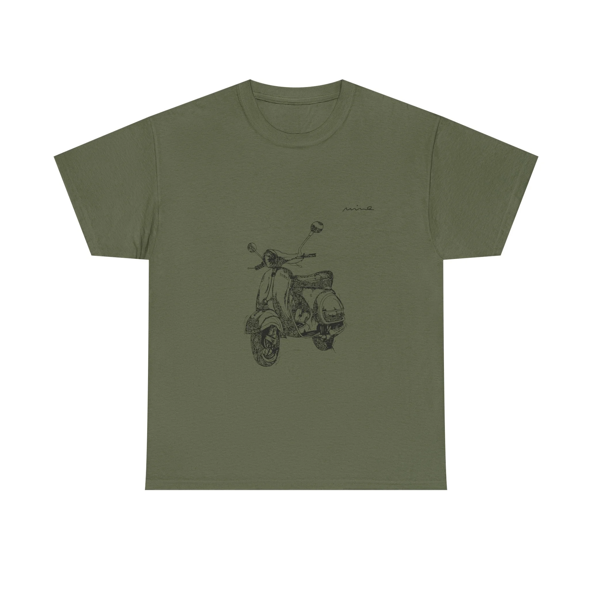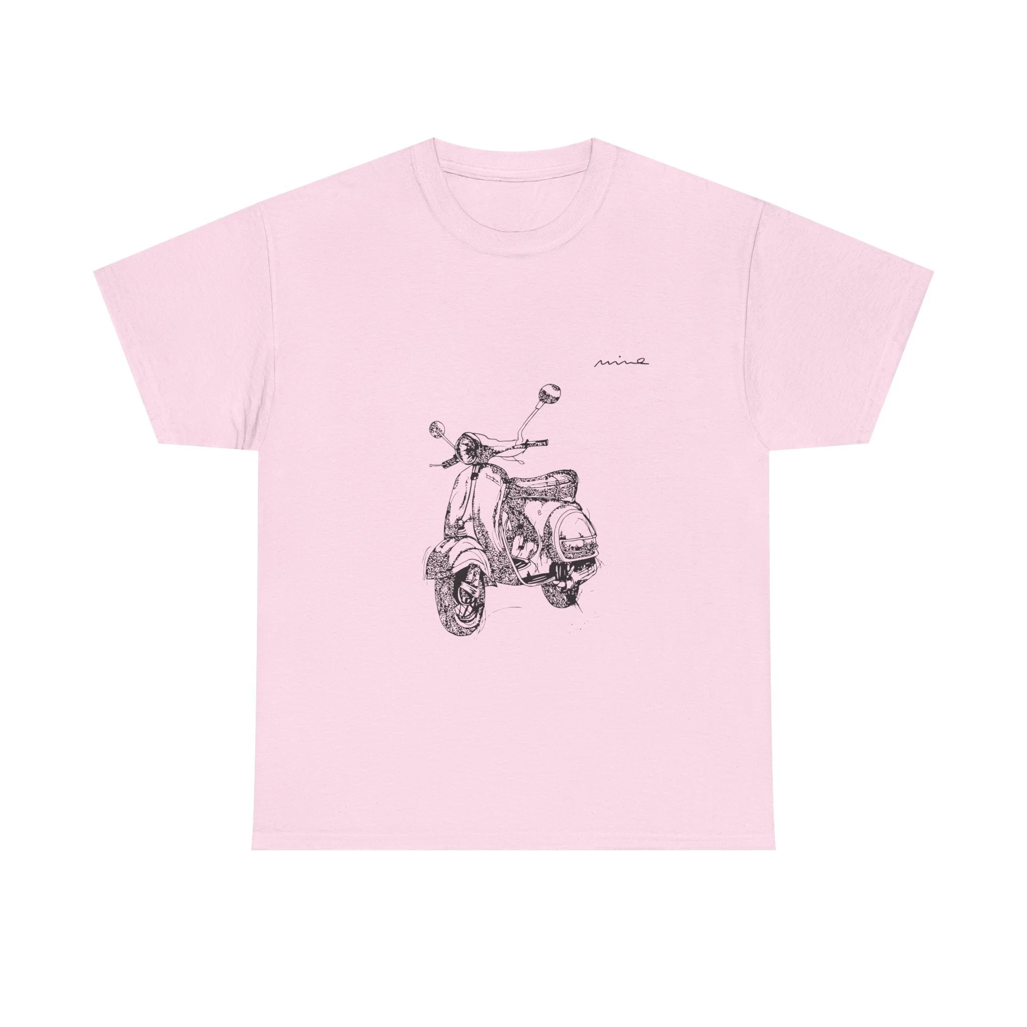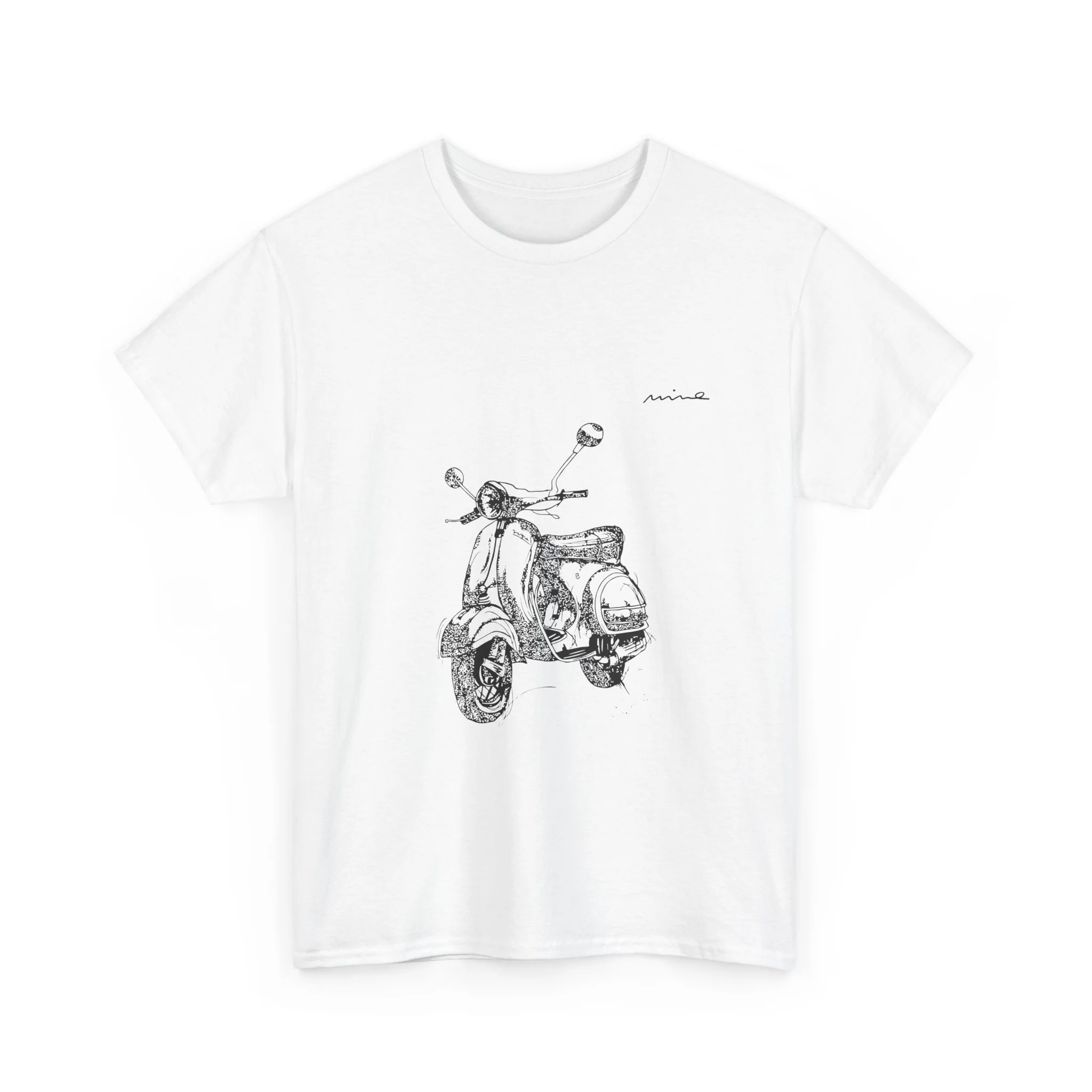 A soft, vintage-inspired tee that feels like the start of a slow, sunlit ride down a seaside lane. A delicate pencil-sketched scooter rests on the chest in subtle graphite tones, with faint handwritten notes on the back like a traveler's memory. The lightweight, breathable cotton drapes casually—easy to layer over a light jacket or wear alone on warm afternoons. This shirt suits people who move at a mindful pace: city wanderers, weekend explorers, and anyone who collects small moments and roadside stories. The understated artwork invites quiet smiles at market stalls, cafe patios, and long coastal walks; it’s for those who appreciate gentle design and lived-in comfort.